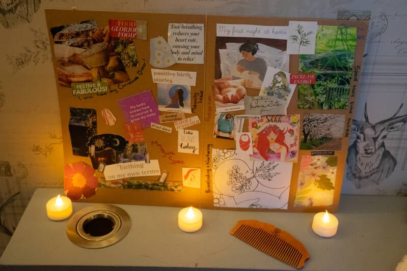 I woke on the 5th at 2am to my toddler screaming and refusing to go back to bed. I couldn’t get down to her level through discomfort so my partner stayed with her and I got back into bed. I felt a surge, bigger than the niggles I’d had before, which came and went. I relaxed into bed and put on some meditations. A few more came and went and seemed to be around 15 minutes apart. I couldn’t sleep through them so just opted for rest instead with affirmations and hypnobirthing tracks in the background. Eventually by around 6am, they spread right out to 40 minutes apart. I texted my doula (and my partner from the other room), to let them know what was happening and that I felt that we MIGHT be on the way.